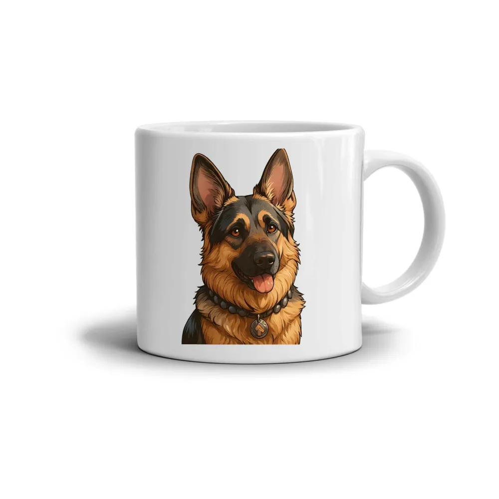 A bögre motívuma egy hűséges tekintetű német juhászkutyát ábrázol, aki barátságos és odaadó kisugárzásával azonnal elnyeri a szívet. A szőrzet élénk színei és a részletgazdag kidolgozás élethű hatást keltenek, ami örömet szerez minden kutyakedvelőnek. Ez a bögre az öröm, az energia és az otthon melegének hangulatát egyesíti, tökéletes választás kávéhoz vagy teához.