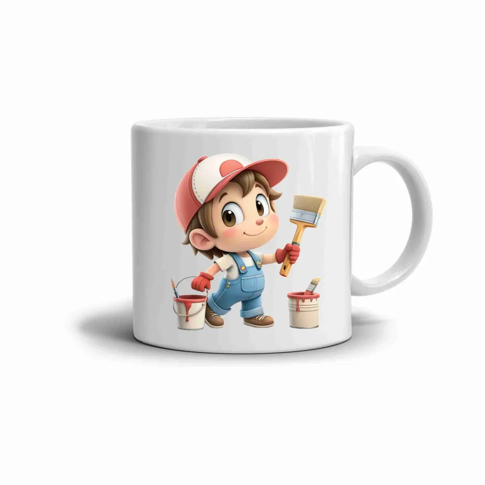 A mosolygós festő, aki ecsettel és színes festékes vödrökkel dolgozik, a bögrére kreativitást, optimizmust és az alkotás örömét hozza. A motívum friss és vidám hangulatot áraszt, emlékeztetve arra, hogy az alkotás szépsége a mindennapokban is ott van. A lágy színek és a barátságos figura játékos atmoszférát teremtenek, amely minden kortyot kellemes pillanattá varázsol. Ez a bögre tökéletes választás mindazoknak, akik szeretik a társalkotást és a jókedvet.