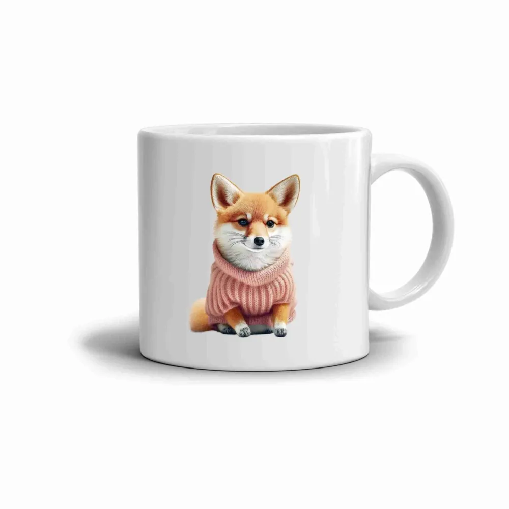 A bögre motívja egy bájos rókát ábrázol rózsaszín pulóverben, aki egyszerre sugároz kedvességet és eleganciát. A lágy rózsaszín árnyalatok harmonikusan illenek a róka meleg színeihez, így a minta kellemes és barátságos hatást kelt. Az egész motívum nyugalmat, játékosságot és egy csipetnyi bájt áraszt, ezért ez a bögre tökéletes társ a pihentető pillanatokhoz. Ideális választás mindazoknak, akik szeretik az állatokat és a stílusos designt.