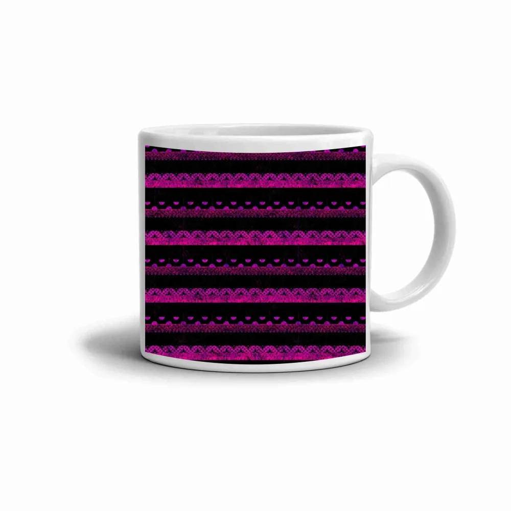 Az abstrakt motívum rózsaszín és fekete árnyalatokban modern és energikus hatást kelt. A szabályos csíkozás finom mintákkal érdekes dinamikát hoz létre, és egyedi karaktert ad a bögrének. Ez a dizájn mindenkit lenyűgöz, aki szereti a feltűnő színeket és a stílusos kiegészítőket, amelyek feldobják a reggelt.