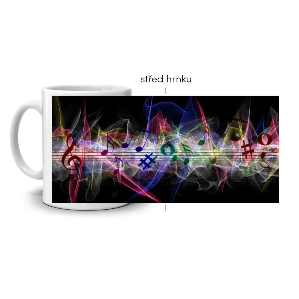 Az absztrakt minta színes hangjegyei a ritmust, a mozgást és a zene örömét fejezik ki. A telt színek és a sötét háttér kombinációja fényes, energikus hatást kelt, mintha a zene életre kelne a bögrén. Modern megjelenésével minden pillanatot vidámabbá tesz.
