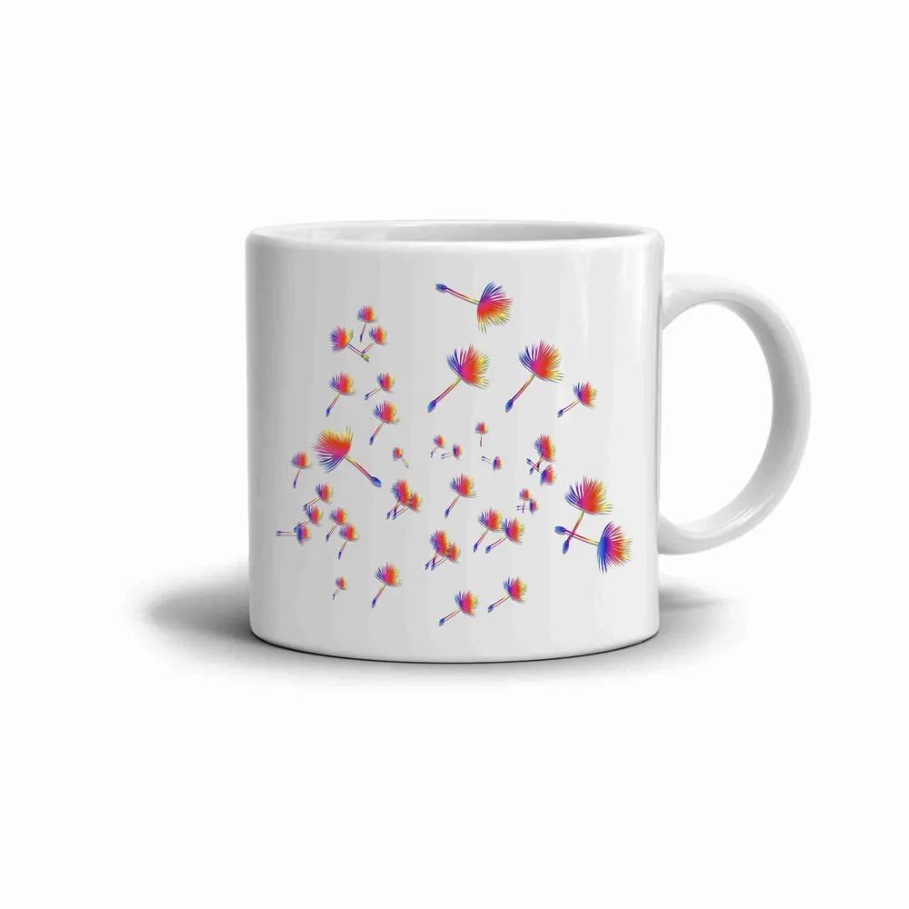 A színes pitypangmintás bögre tökéletes ajándék mindenkinek, aki szereti a könnyedséget, a pozitív energiát és a kreativitást. Színes és inspiráló kiegészítője lehet minden reggeli kávénak vagy délutáni teának.