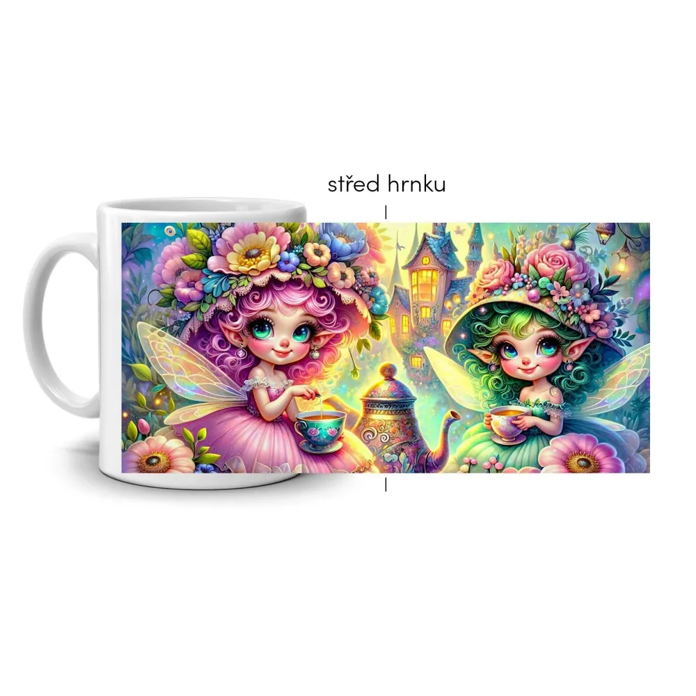 A varázslatos tündéres motívum két virágruhás tündérrel minden napba egy kis mesevilágot visz. A lágy színek, a ragyogó részletek és a mesés hangulat harmonikus, fantáziával és örömmel teli világot teremtenek. Ez a bögre egyszerre játékos és elegáns, tökéletes választás mindenkinek, aki szereti a mesés mintákat és az álomszerű designt.