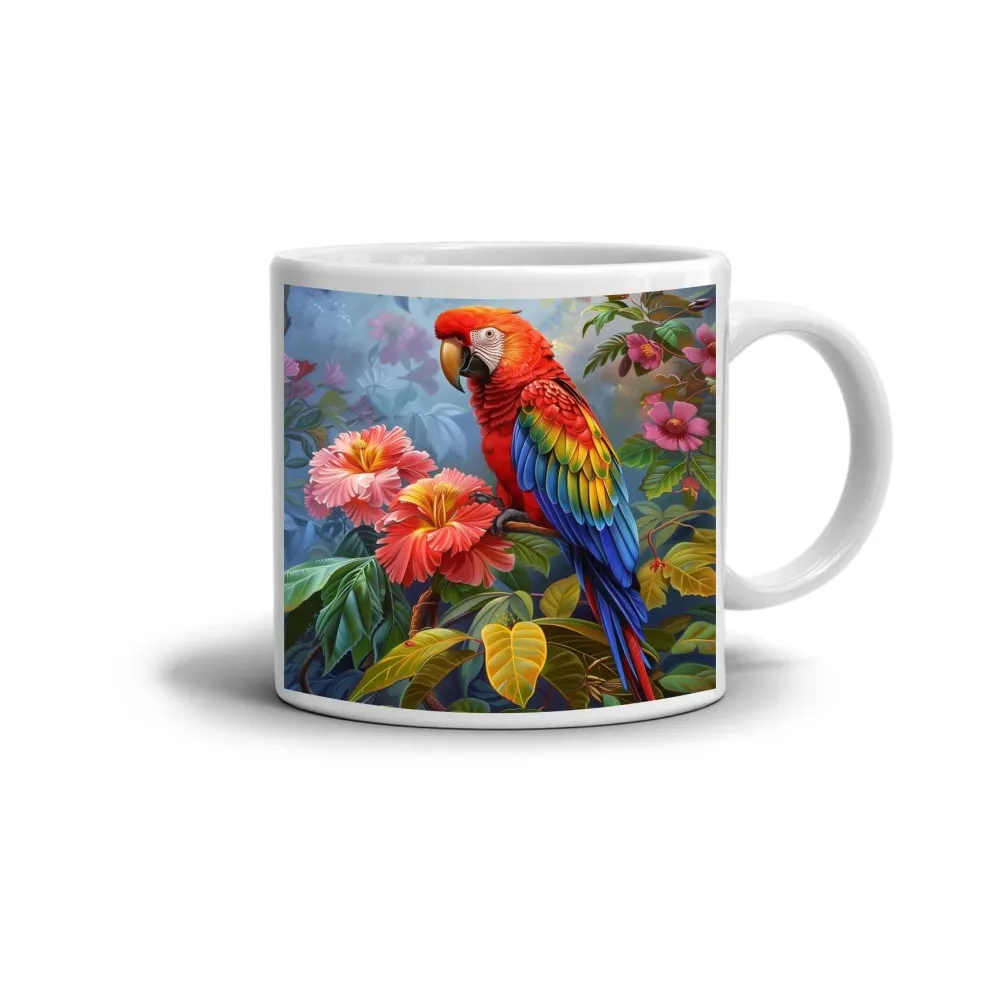 A színes ará papagájos bögre eredeti ajándék mindenkinek, aki szereti a trópusi természetet, az élénk színeket és az egzotikus motívumokat. Minden kortyban jókedvet és pozitív energiát ad. Kiváló választás azoknak, akik értékelik a színek, az energia és a természet szépségének harmóniáját.