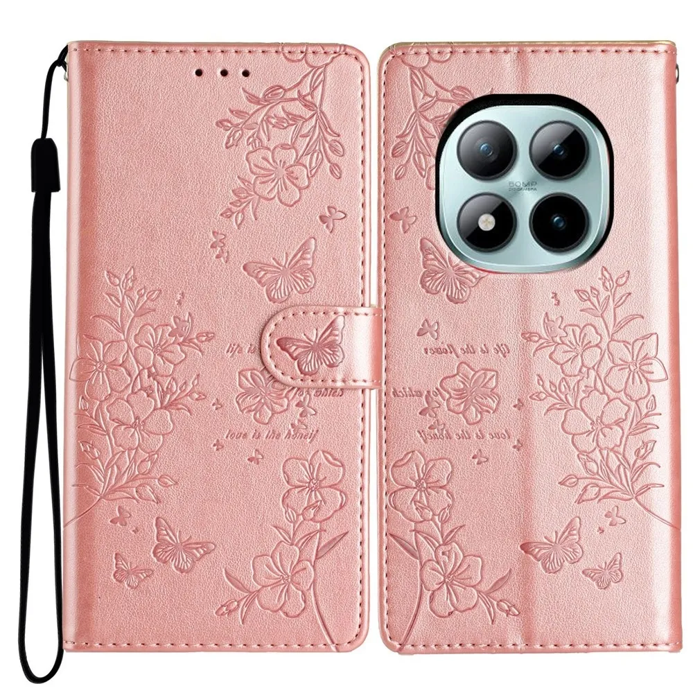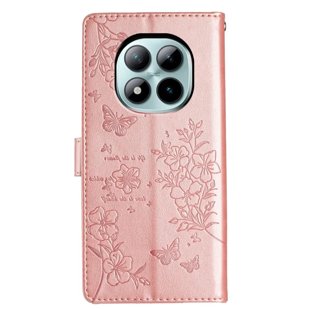 Rózsaszín és arany Floralis pénztárca tok a Xiaomi Redmi Note 15 Pro+ 5G számára