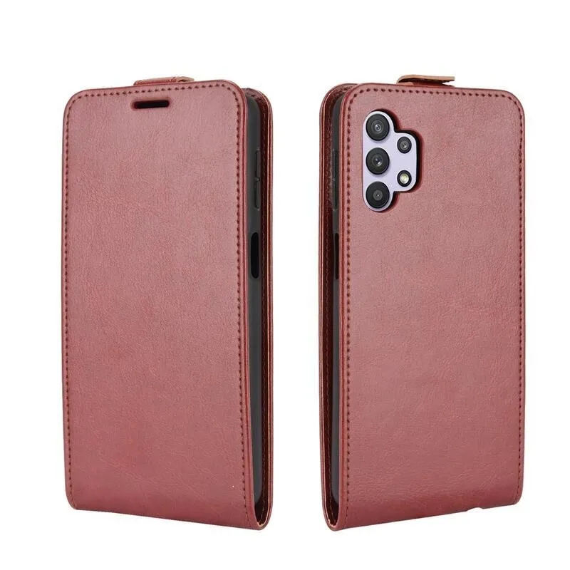 Függőleges PU bőr flip tok Samsung Galaxy A32 5G - barna