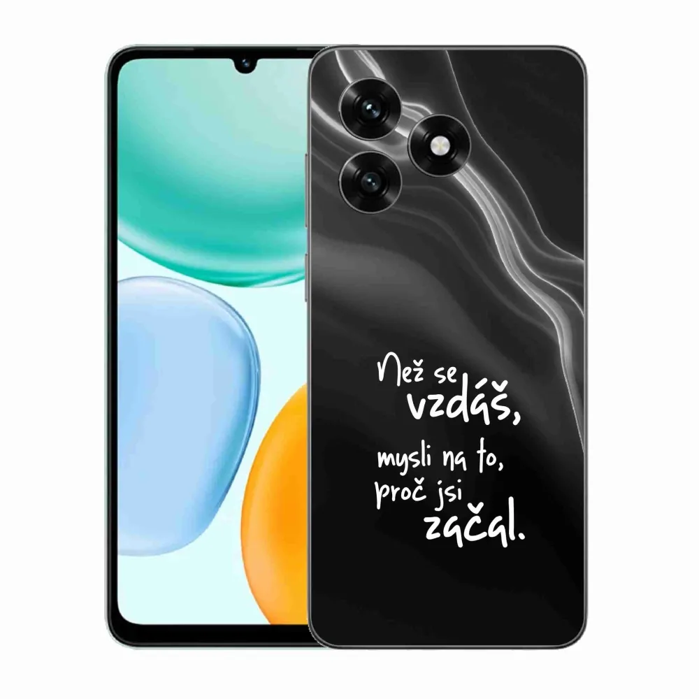 Rugalmas zselés tok mmCase a Honor X5c Plus képével - idézet 2 fekete háttérrel