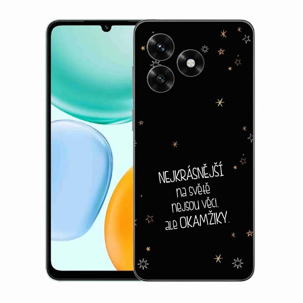 Rugalmas zselés tok mmCase a Honor X5c Plus képével - idézet 4 fekete háttérrel