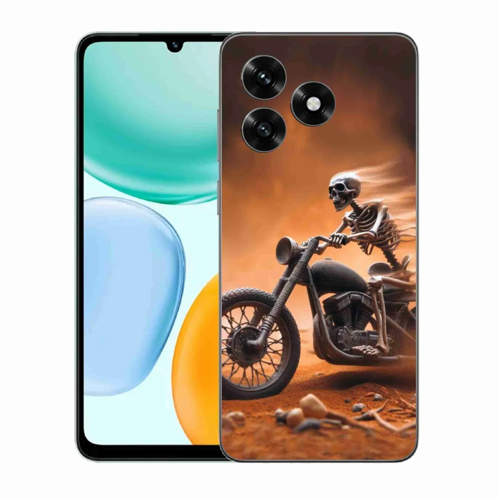 Rugalmas zselés tok mmCase a Honor X5c Plus képével - csontváz egy motorkerékpáron