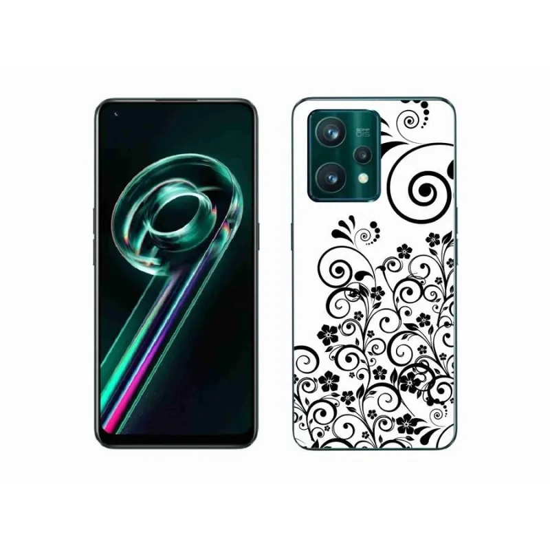 Gél borítás mmCase a Realme 9 Pro+ 5G készülékhez - fekete és fehér virágminták