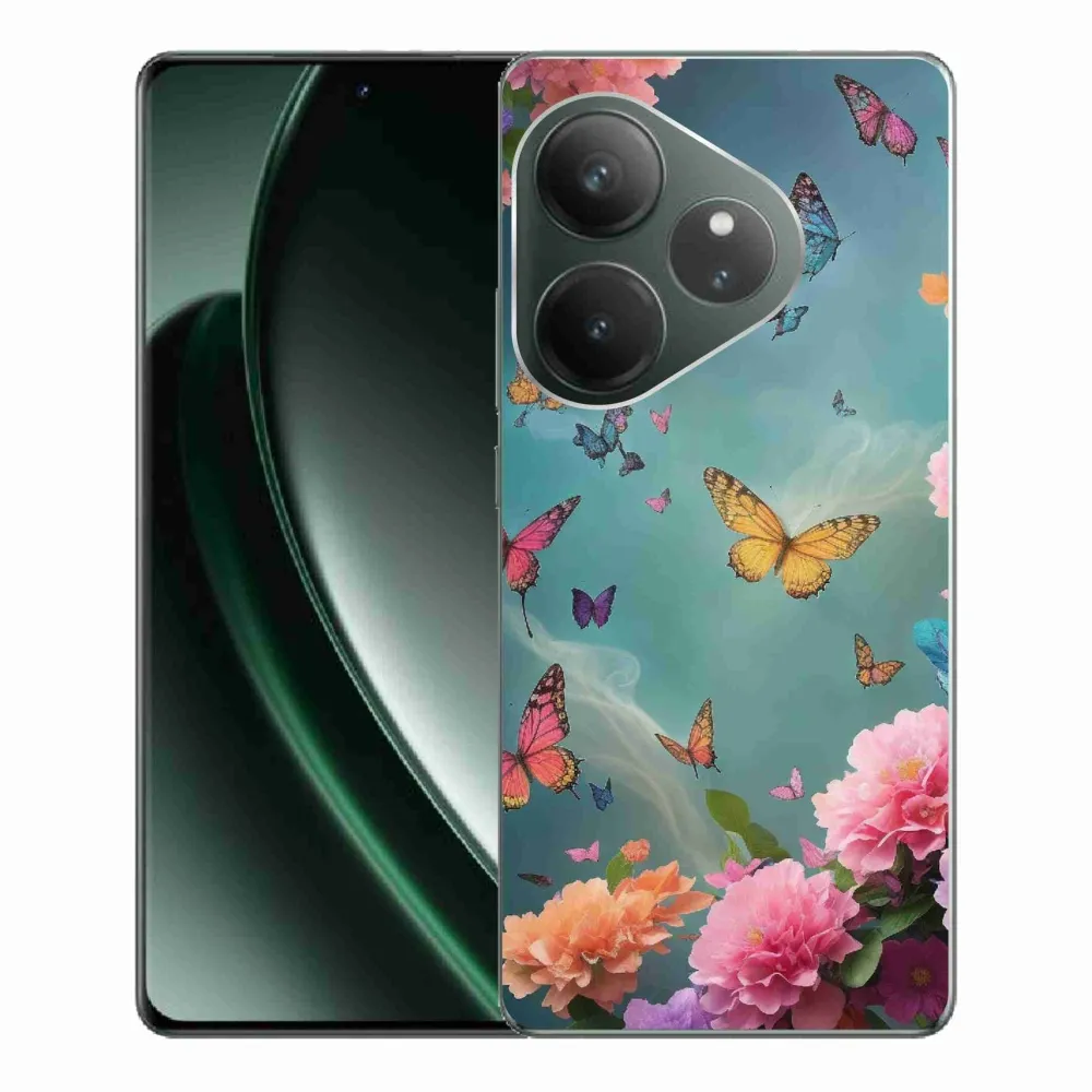 Rugalmas zselés borítás mmCase a Realme GT 6 5G/GT 6T 5G képével - színes virágok és pillangók