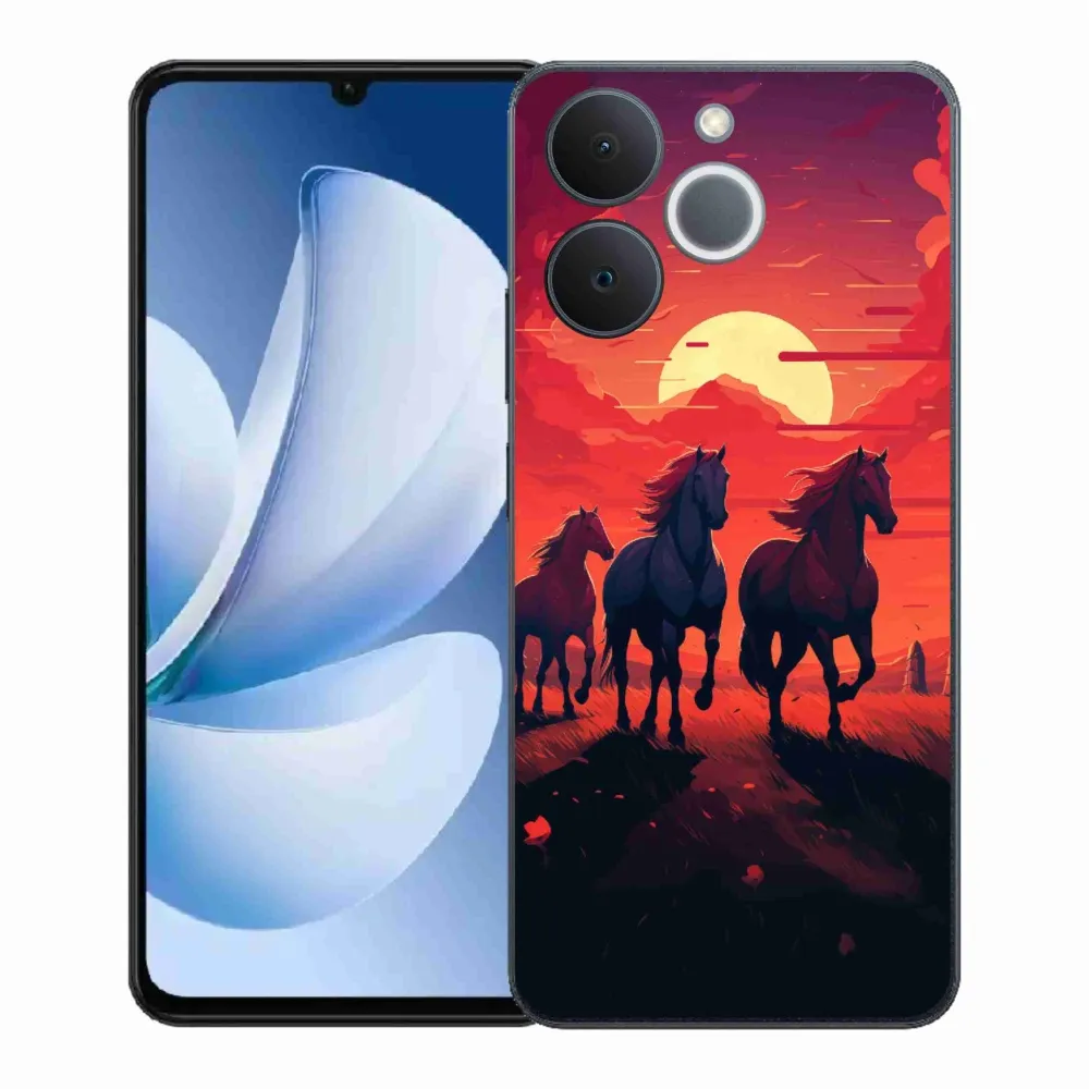 Rugalmas zselés tok mmCase képpel a Realme Note 70T számára - lovak és naplemente