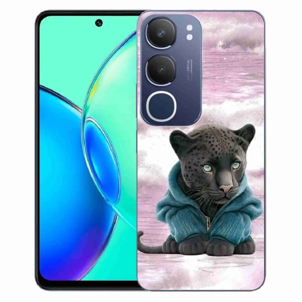 Rugalmas zselés tok mmCase a Vivo Y19s képével - fekete párduc pulóverben