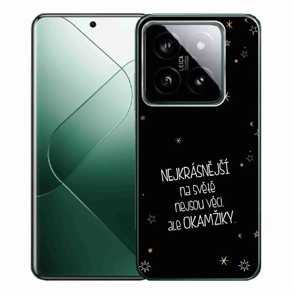 Rugalmas zselés tok mmCase a Xiaomi 14 Pro képével - idézet 4 fekete háttérrel