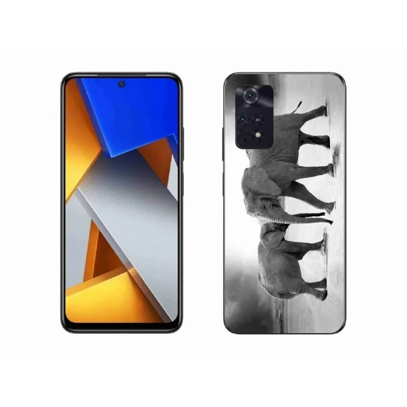 Gél borítás mmCase a Xiaomi Poco M4 Pro 4G számára - fekete és fehér elefántok