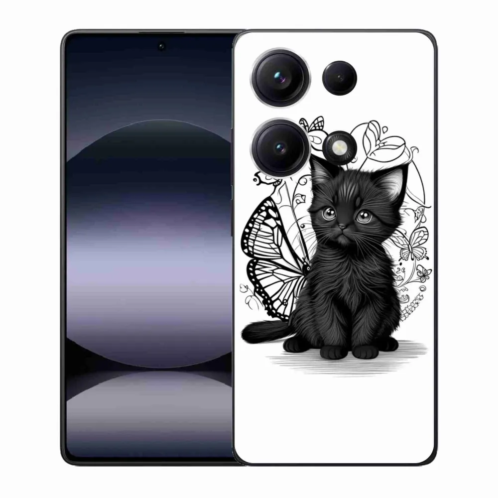 Rugalmas zselés tok mmCase képpel a Xiaomi Redmi Note 14S-en - fekete cica