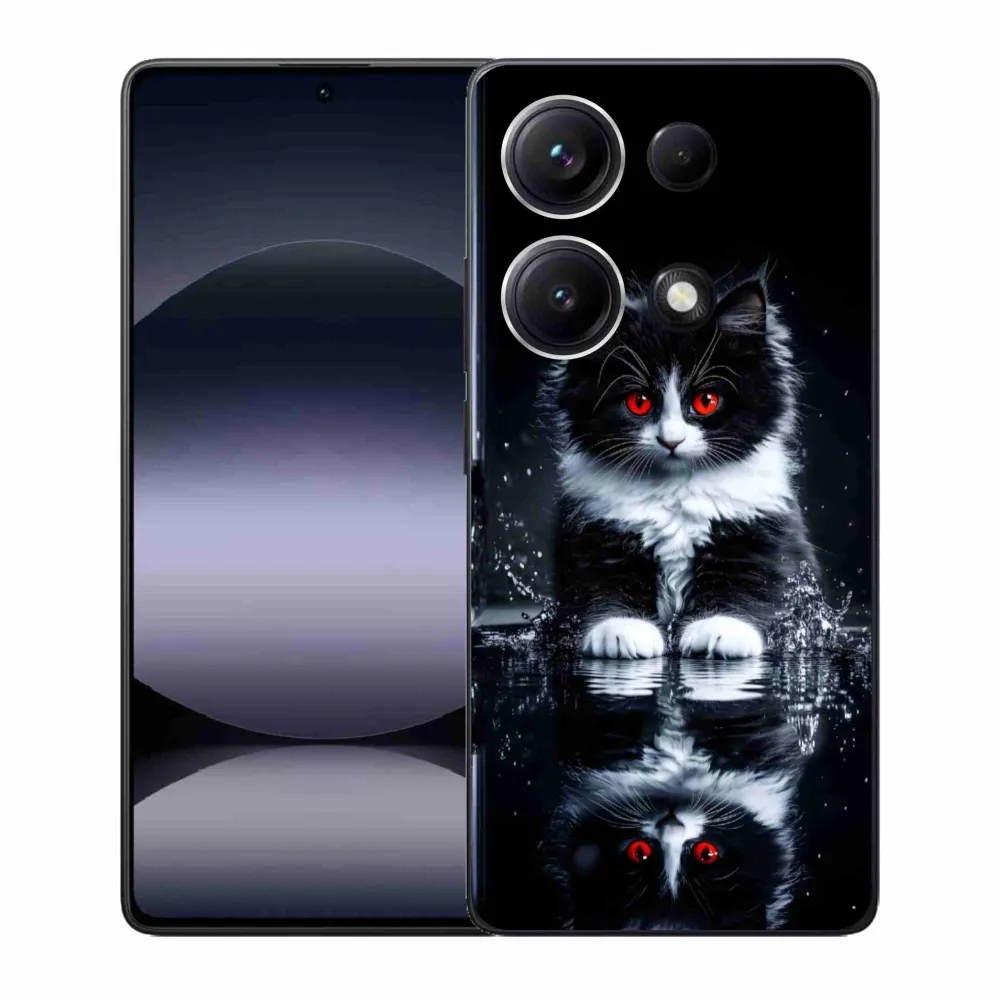 Rugalmas gél tok mmCase kép Xiaomi Redmi Note 14S - fekete-fehér cica - fekete-fehér cicával