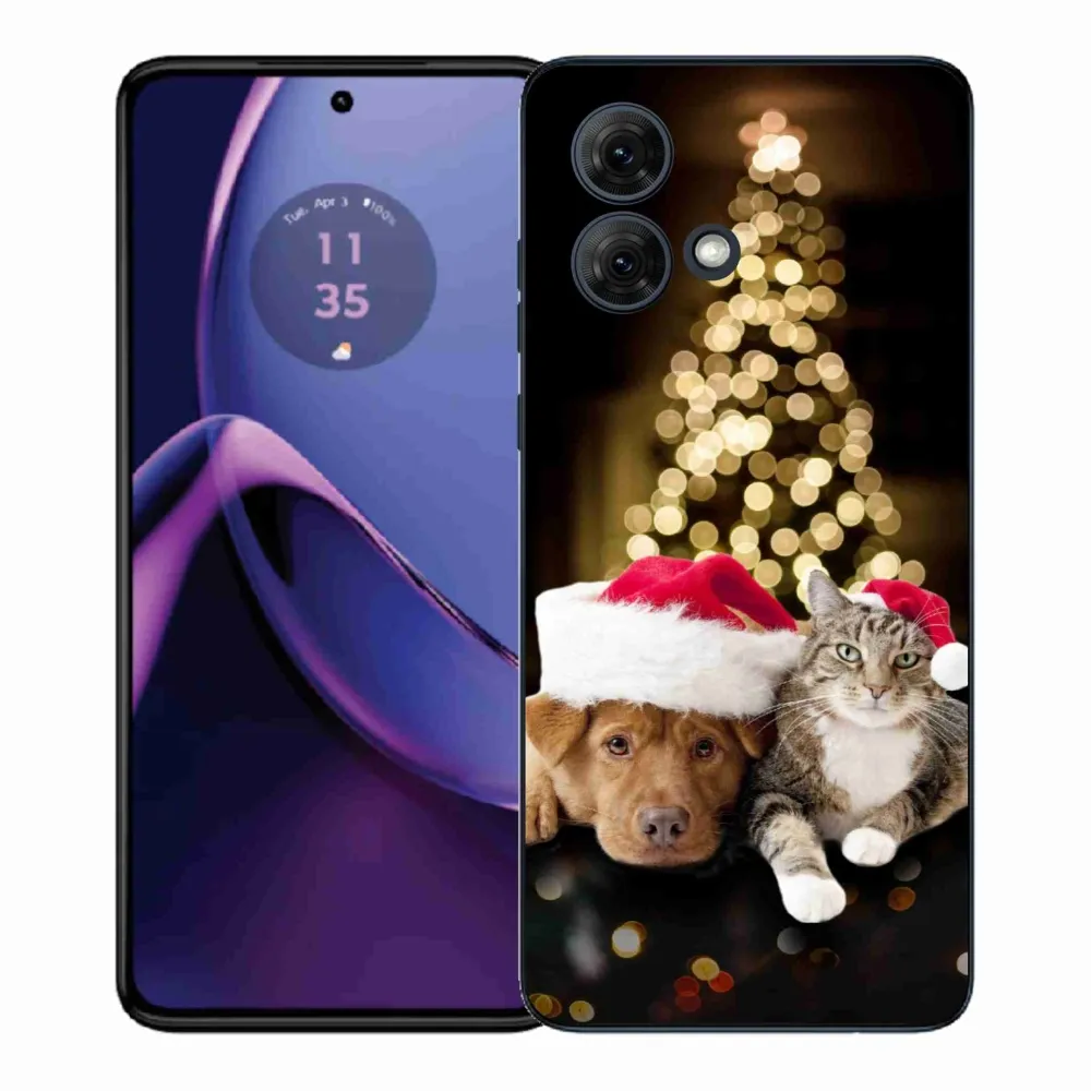 Rugalmas zselés tok mmCase a Motorola Moto G84 5G képével - karácsonyi kutya és macska