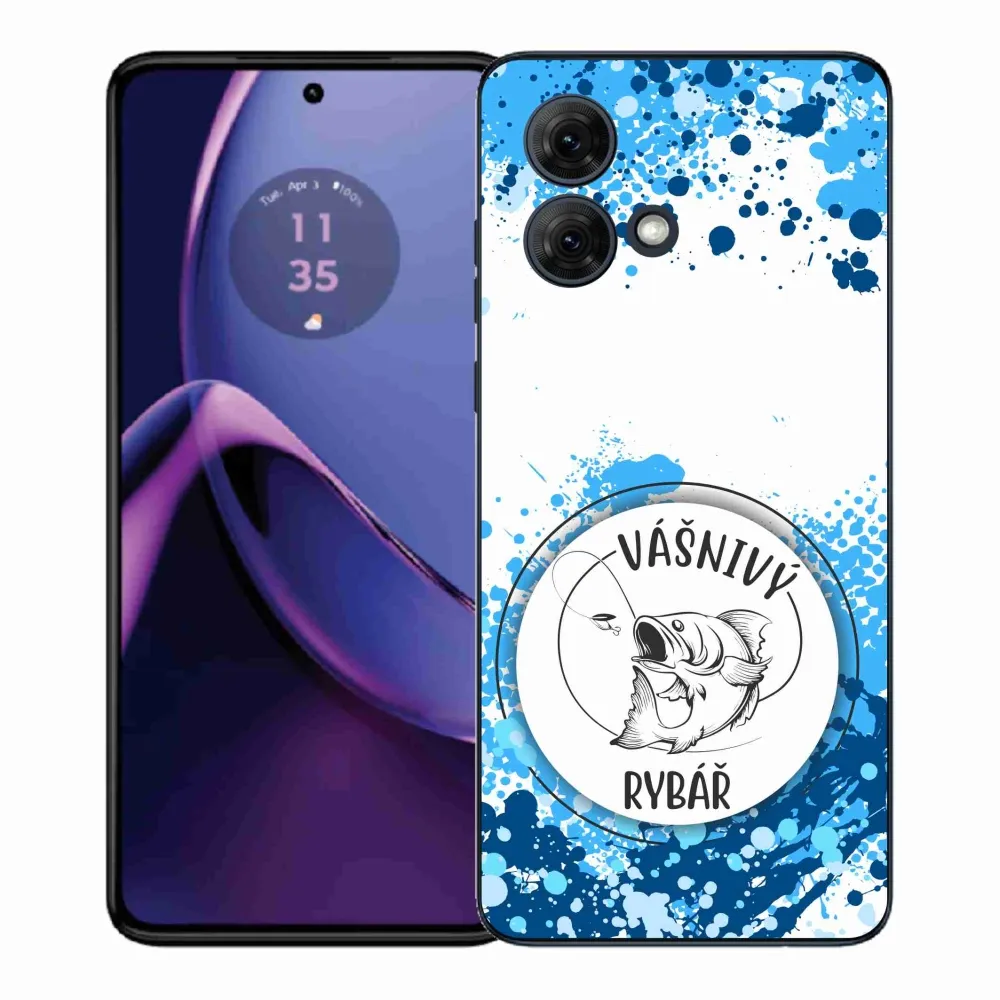 Rugalmas zselés tok mmCase a Motorola Moto G84 5G képével - szenvedélyes halász fehér háttérrel