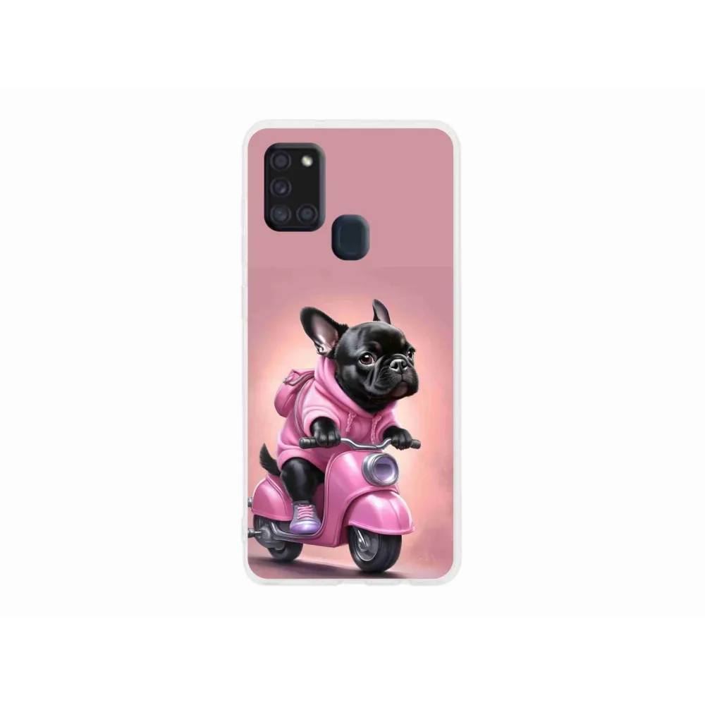 Gél borítás mmCase Samsung Galaxy A21s készülékhez - Francia bulldog egy robogón