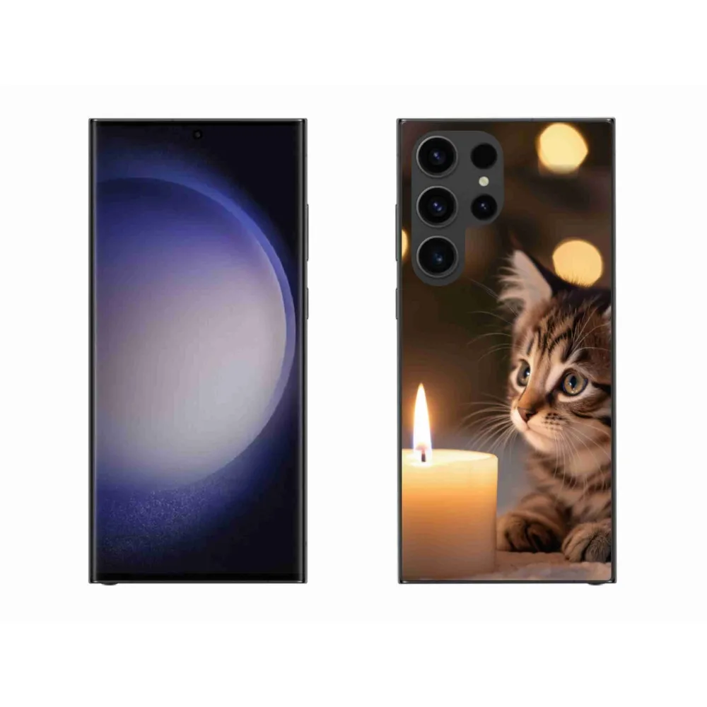 Gél borítás mmCase Samsung Galaxy S23 Ultra 5G készülékhez - cica és gyertya
