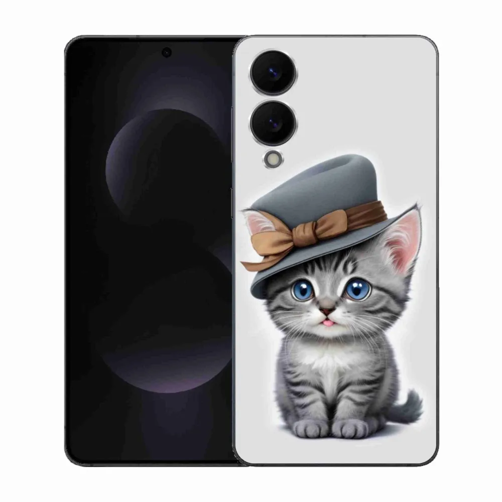 Rugalmas zselés tok mmCase kép Samsung Galaxy S25 Edge - cica sapkával