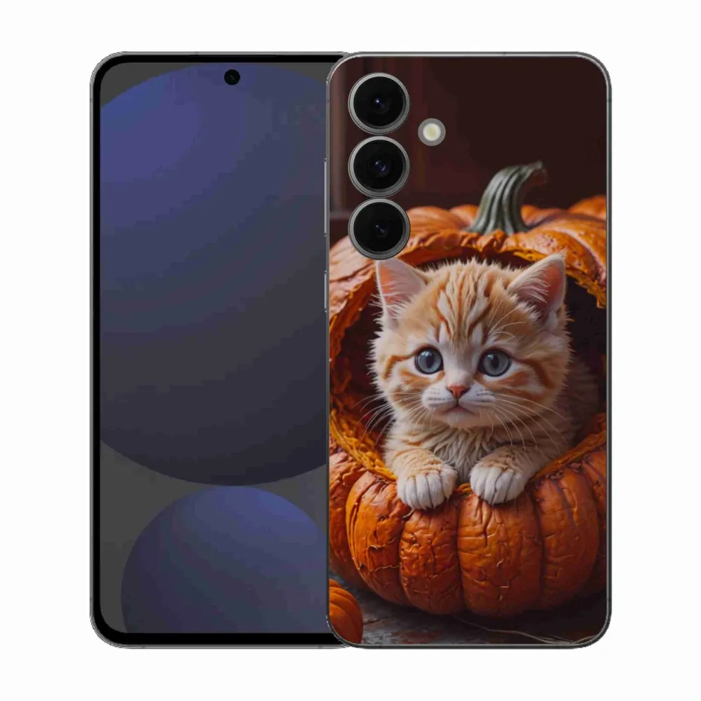 Rugalmas gél tok mmCase kép Samsung Galaxy S25 FE - cica és tök 2