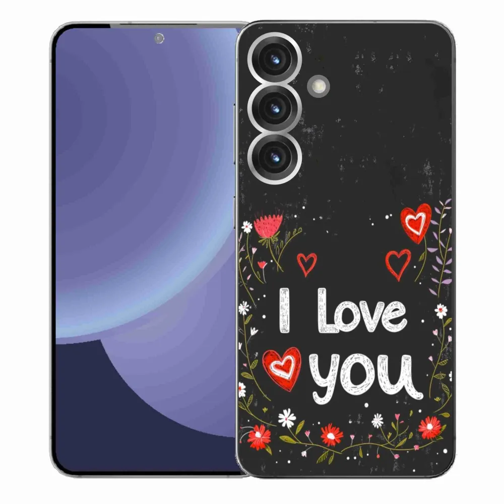 Rugalmas zselés tok mmCase kép Samsung Galaxy S25+ - I love you fekete háttérrel