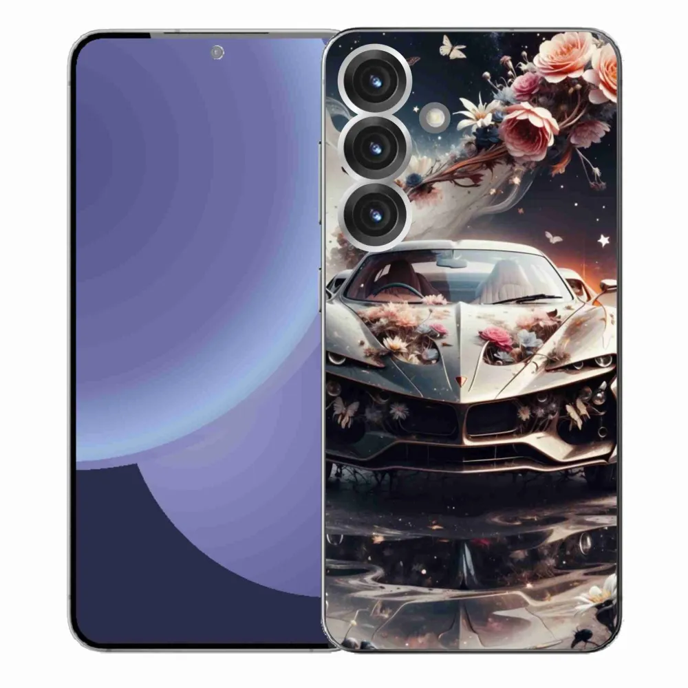 Rugalmas zselés tok mmCase kép Samsung Galaxy S25+ - virágos sportkocsi - kép Samsung Galaxy S25+