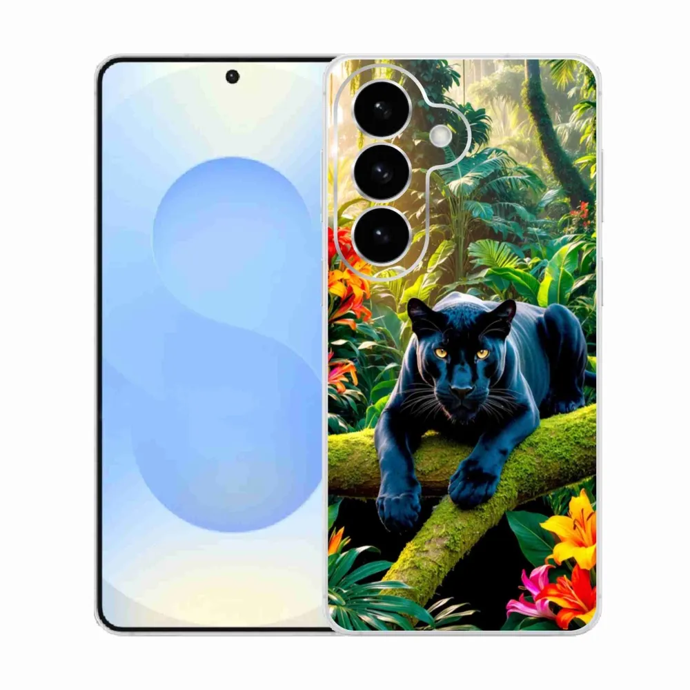 Rugalmas zselés tok mmCase kép Samsung Galaxy S26 - fekete párduc a dzsungelben
