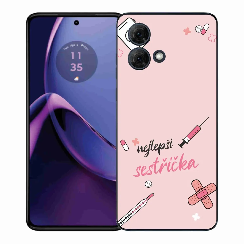 Rugalmas zselés tok mmCase a Motorola Moto G84 5G képével - legjobb kishúg rózsaszín háttérrel