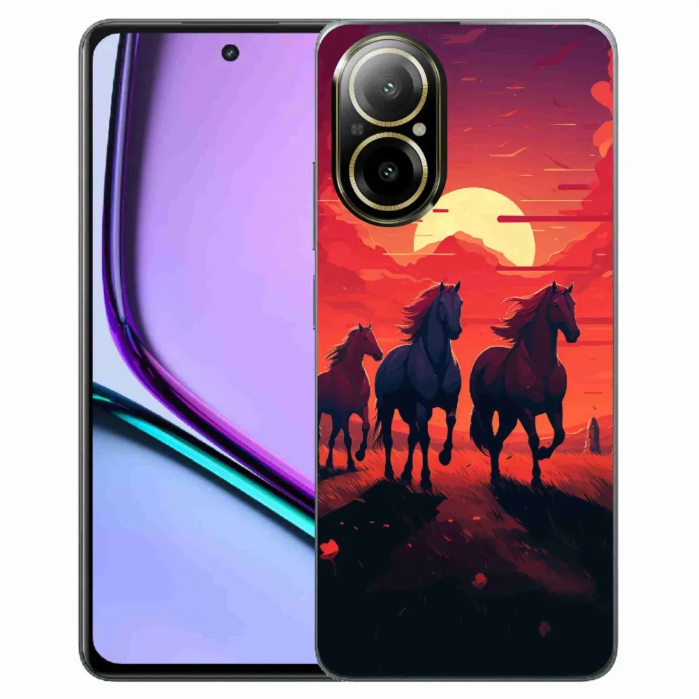 Gél borító mmCase a Realme C67 készülékhez - lovak és naplemente