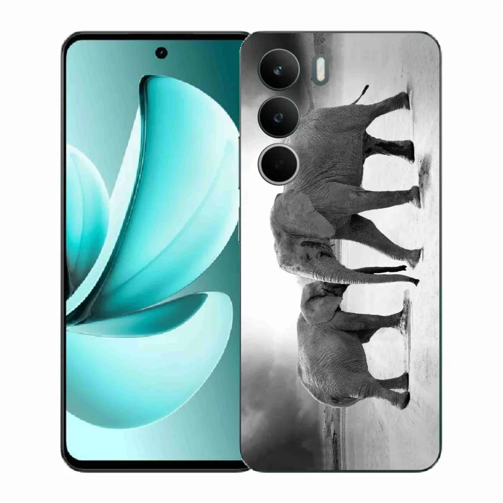 Rugalmas zselés tok mmCase képpel a Realme C71 készülékhez - fekete és fehér elefántok