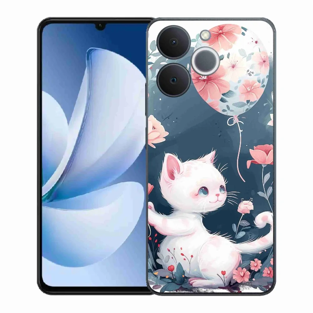 Rugalmas zselés tok mmCase képpel a Realme Note 70T számára - cica lufival