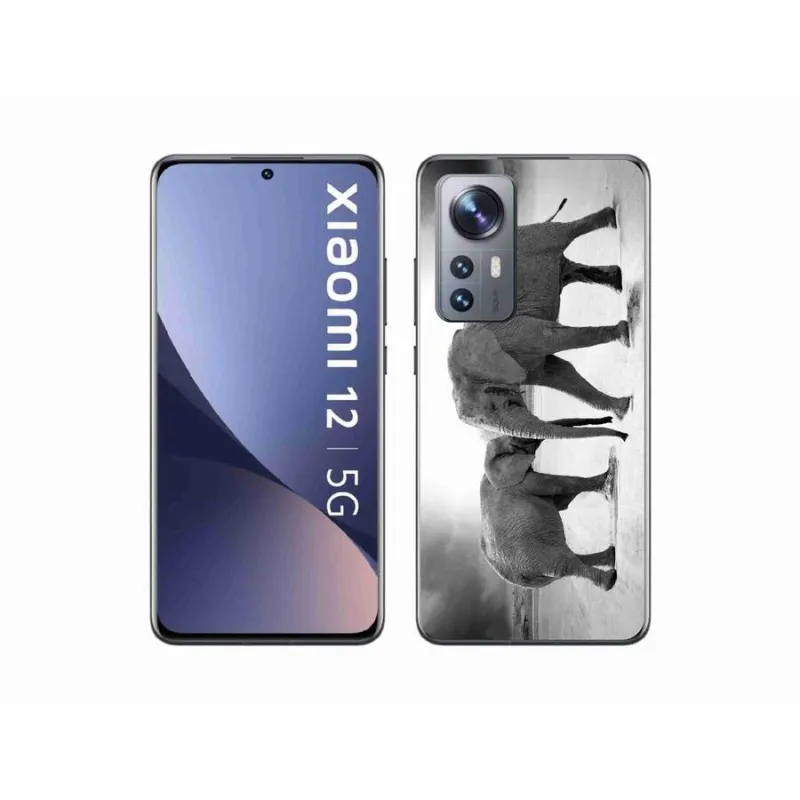 Gél borító mmCase a Xiaomi 12X-hez - fekete és fehér elefántok