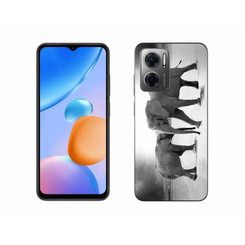 Gél borító mmCase a Xiaomi Redmi 10 5G-hez - fekete és fehér elefántok