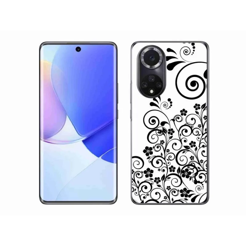 Gél borító mmCase mobil Huawei Nova 9 - fekete és fehér virágmintás tok
