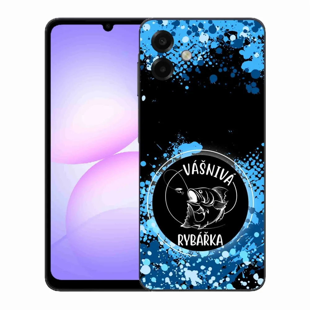 Rugalmas zselés tok mmCase kép Samsung Galaxy A07 4G - szenvedélyes halásznő fekete háttérrel