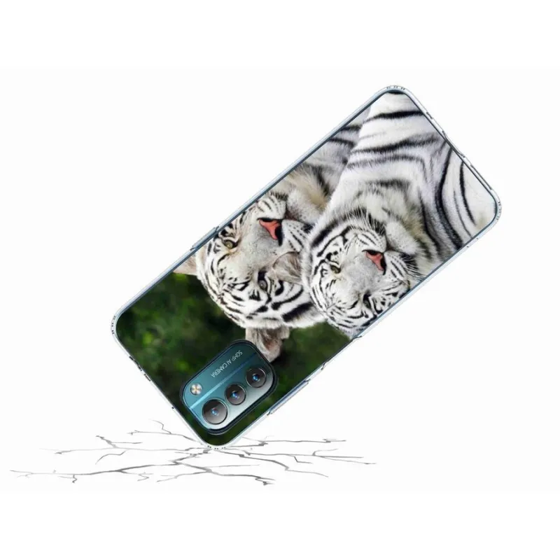 Gél tok mmCase mobiltelefonhoz Nokia G11/G21 - fehér tigrisek