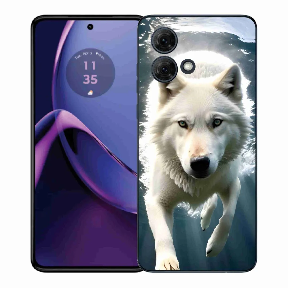 Rugalmas zselés tok mmCase a Motorola Moto G84 5G képével - fehér farkas