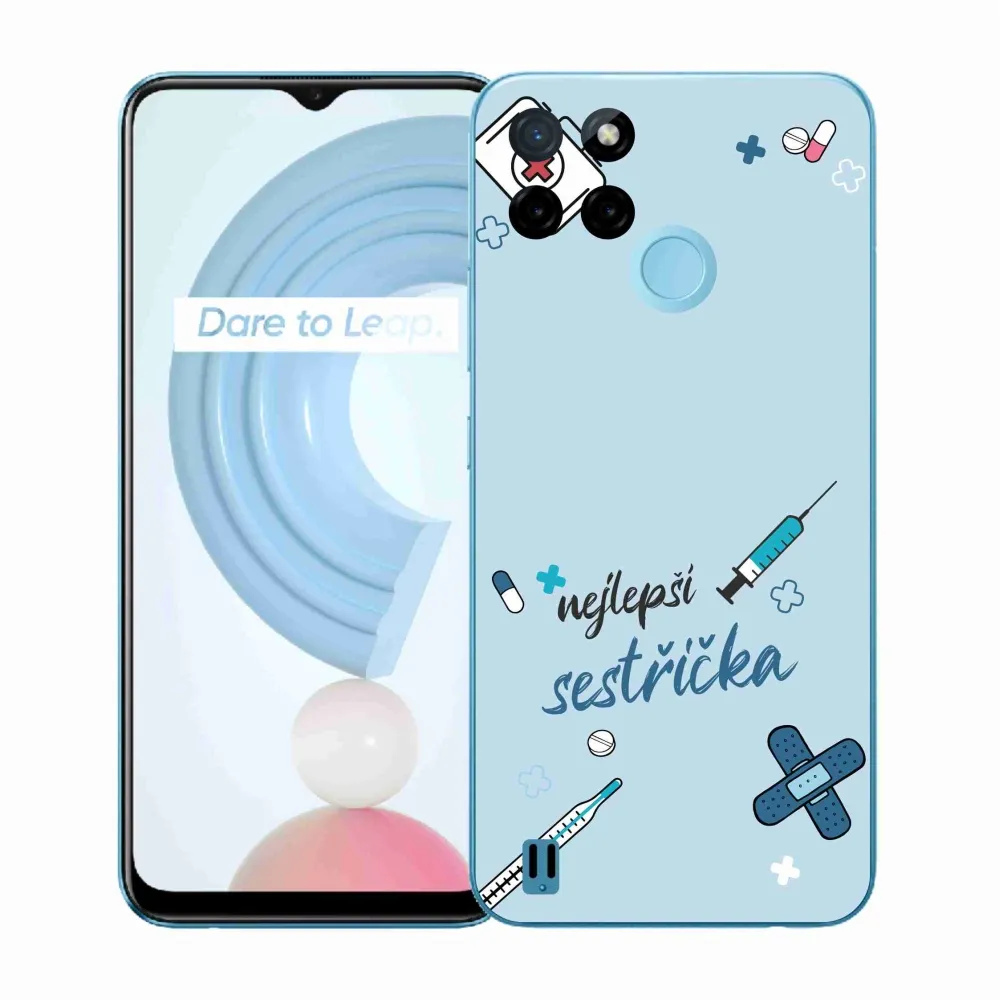 Rugalmas zselés tok mmCase a Realme C21Y/C25Y képével - a legjobb kishúg kék háttérrel