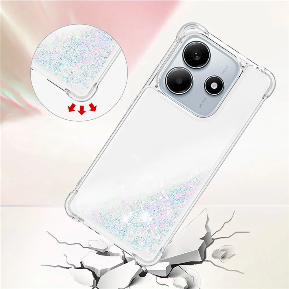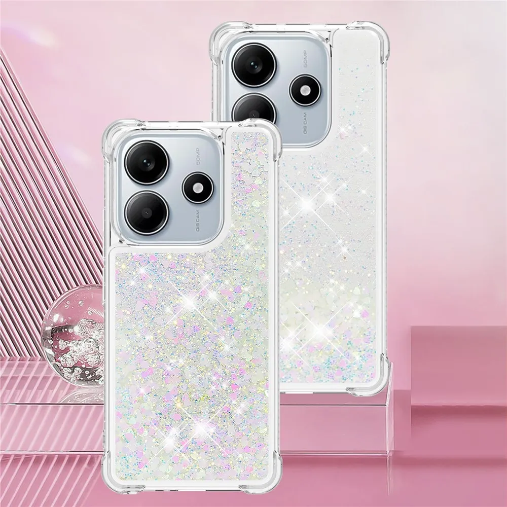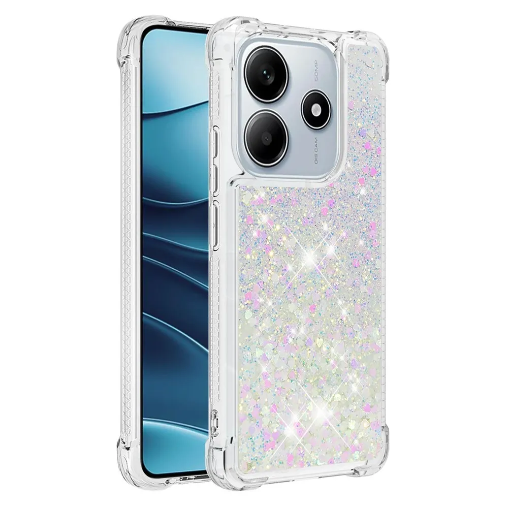 Rózsaszín és ezüst csillogó szilikon tok szívekkel a Xiaomi Redmi Note 14 5G-nél