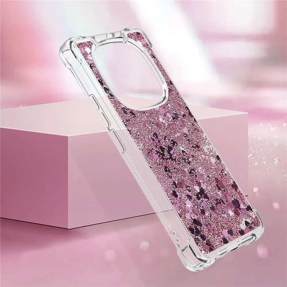 Rózsaarany csillogó szilikon tok szívekkel Xiaomi Redmi Note 14 Pro 5G/Poco X7 5G számára