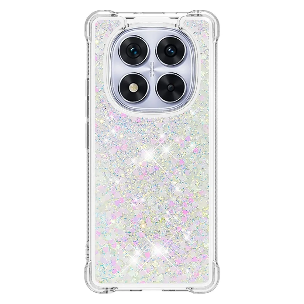Rózsaszín és ezüst csillogó szilikon tok szívekkel Xiaomi Redmi Note 14 Pro 5G/Poco X7 5G számára