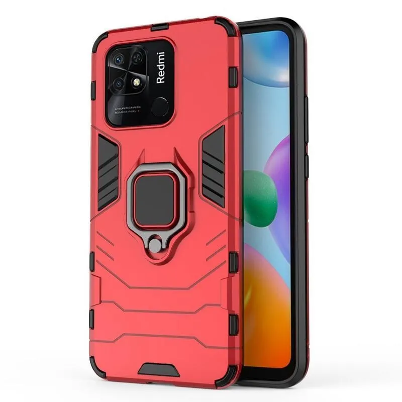 Guardy tartós hibrid borító ujjbeggyel Xiaomi Redmi 10C-hez - piros