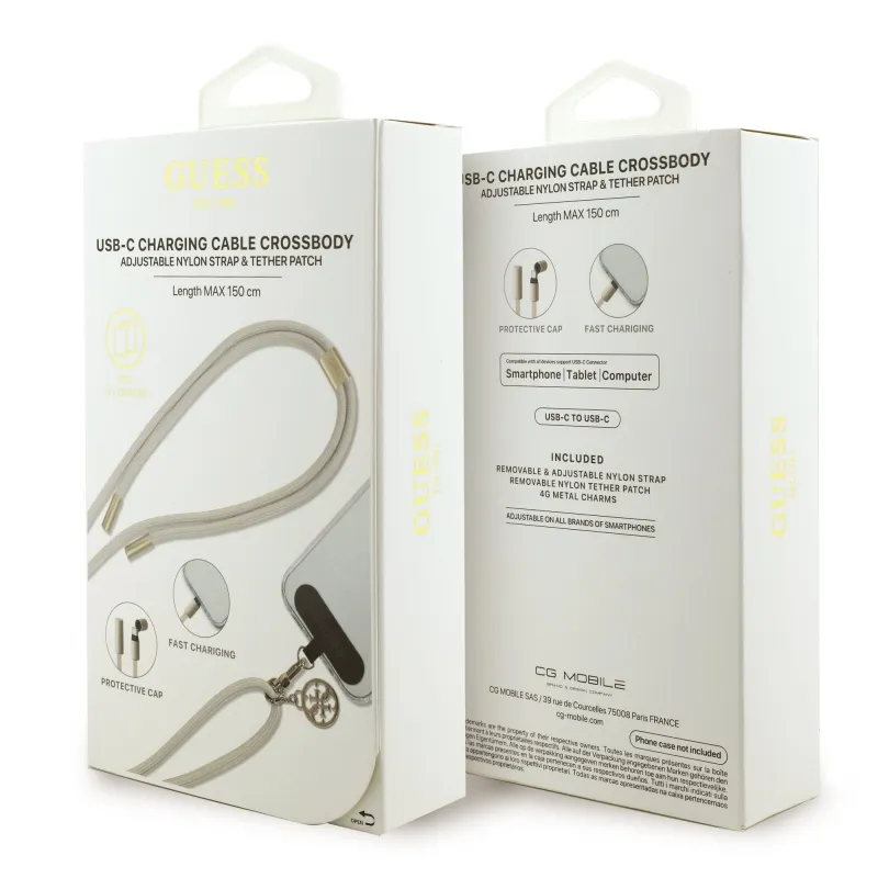 Guess Crossbody Strap 4G Charm USB-C/USB-C töltőkábellel bézs színben