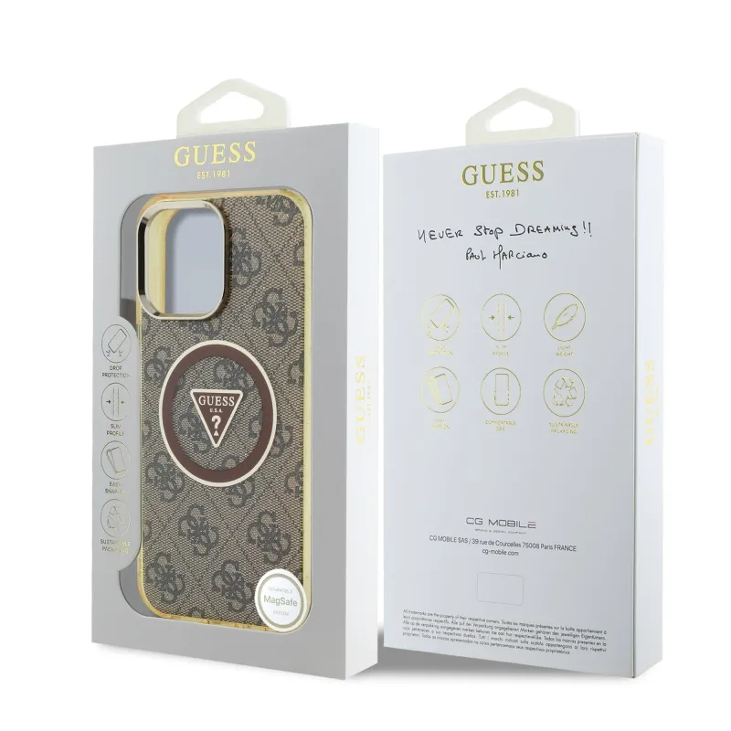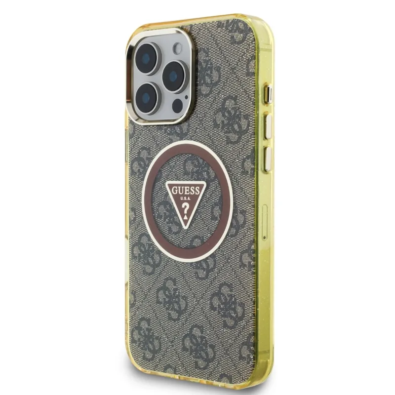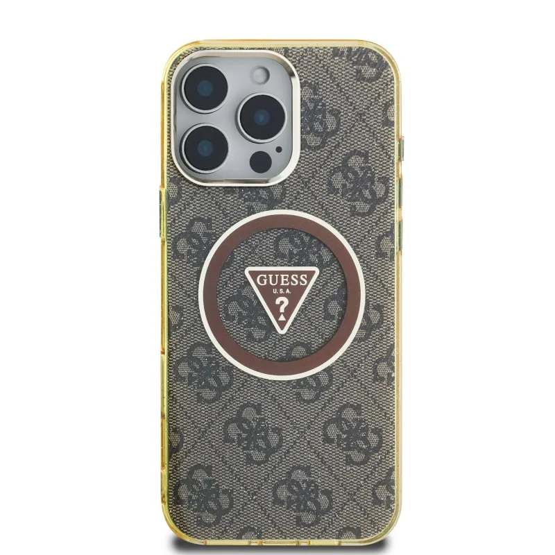 Guess IML 4G csillogó és háromszög logóval ellátott MagSafe hátlap iPhone 16 Pro barna színű iPhone 16 Pro készülékhez