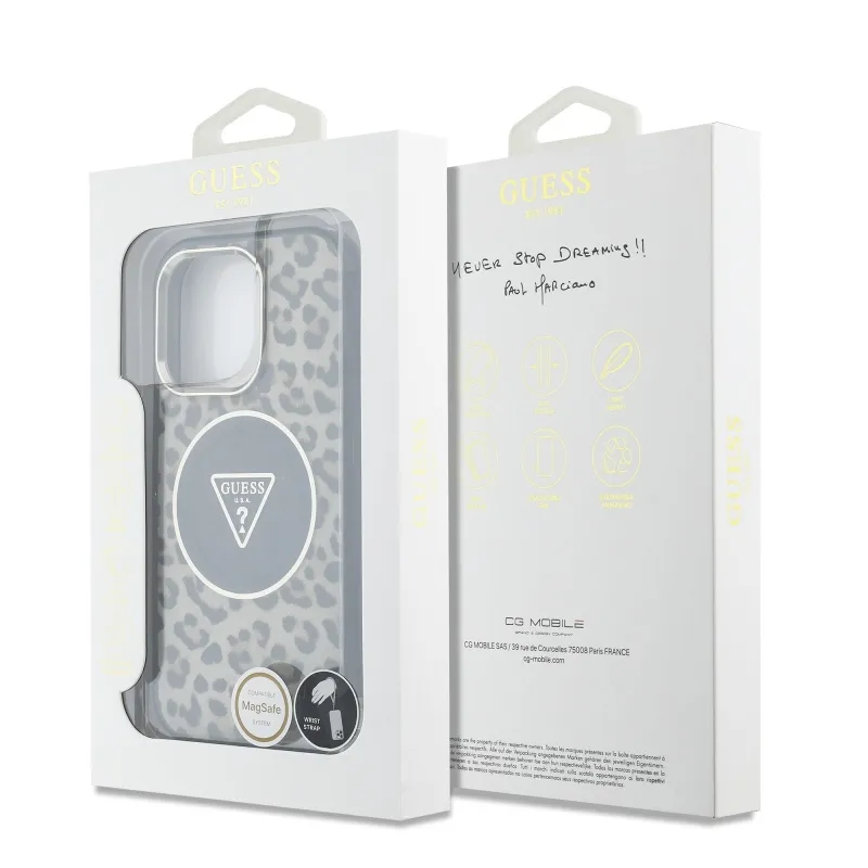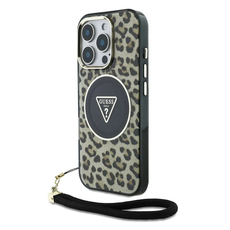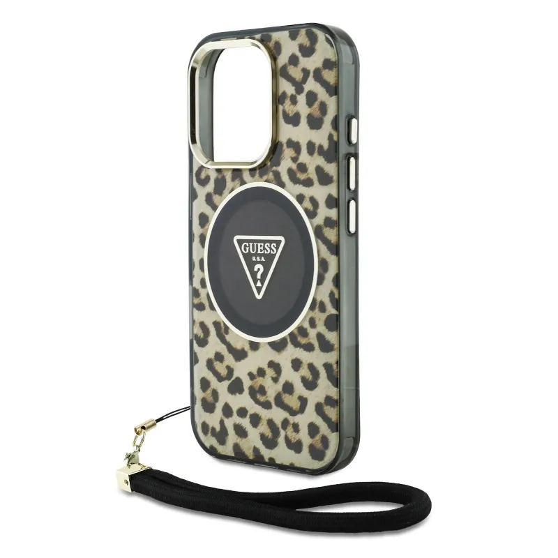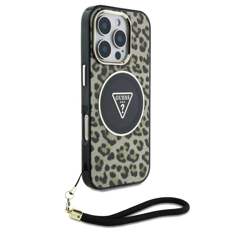 Guess IML Leopard Leopárd háromszög logó szíj MagSafe hátlap iPhone 16 Pro Max barna színű hátlaphoz