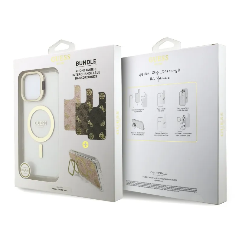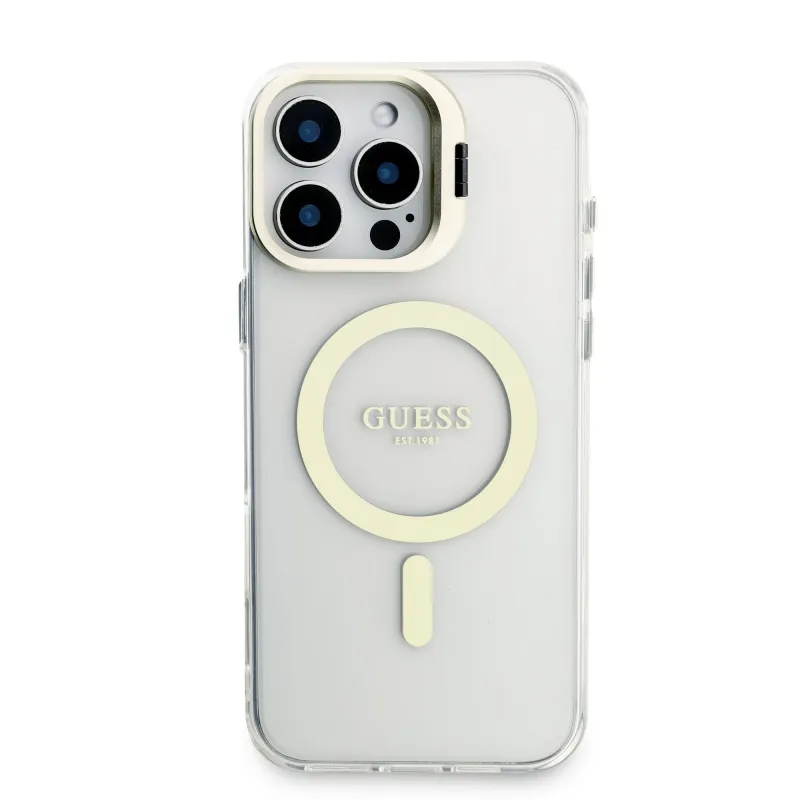 Guess PC/TPU galvanizált állvány kamerakeret hátlap levehető háttérrel iPhone 16 Pro Max készülékhez