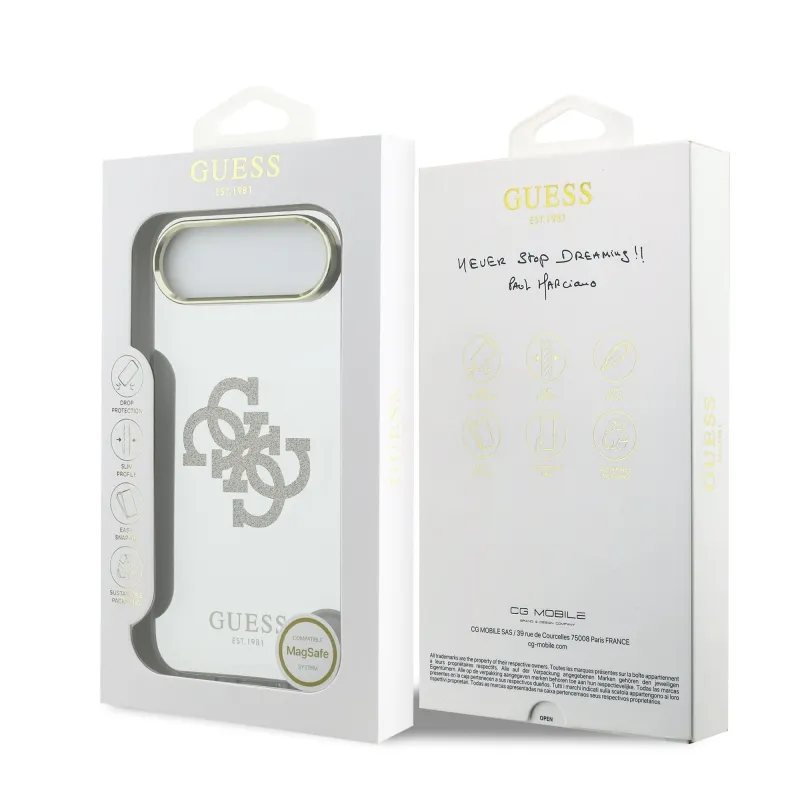 Guess PC/TPU Mirror 4G Glitter Logo MagSafe hátlap az iPhone Airhez Arany